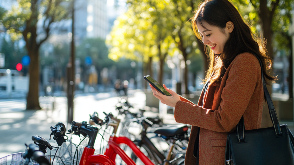 ポートの場所や空き状況は各サービスの専用アプリで確認できます。特に朝の通勤時間帯は人気のポートで自転車がなくなることもあるため、事前に予約機能を活用するとよいでしょう。