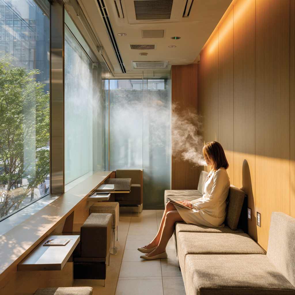 大型オフィスビル内には、テナント向けの喫煙所が設置されている施設が多数あります。建物内での喫煙が禁止される一方で、指定喫煙所での喫煙が許可されています。