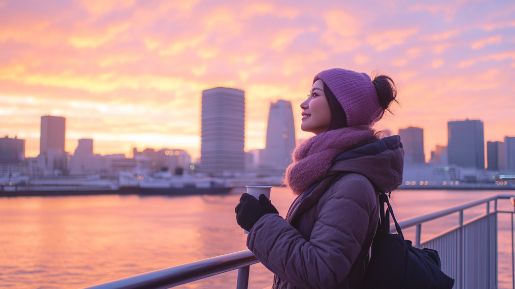 中央区での初日の出観賞において、最も重要なのが防寒対策です。元日の早朝の気温は氷点下近くまで下がることが多く、特に隅田川沿いや東京湾周辺では風が強く、体感温度がさらに低くなります。重ね着を基本とし、脱ぎ着しやすい服装を選ぶことが大切です。インナーには保温性の高い素材を選び、中間層にはフリースやセーター、外側には風を通しにくいアウターを着用しましょう。