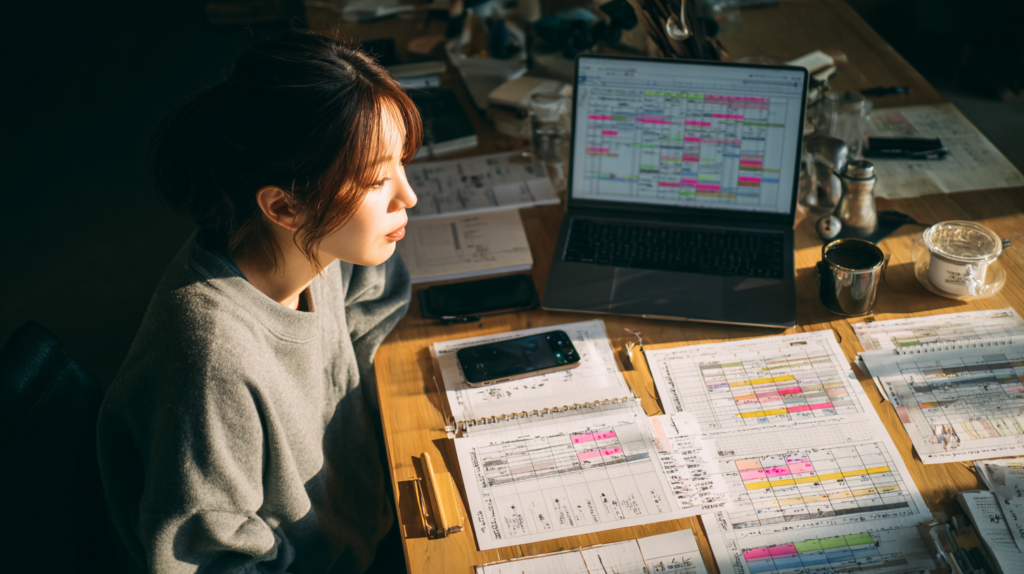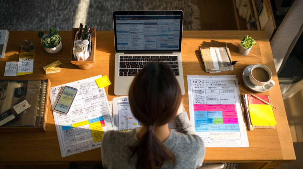 在宅でのSNS運用では、時間管理が収入に直結します。まず、各クライアントの投稿スケジュールを統合したマスタースケジュールを作成し、効率的な作業順序を計画します。板橋区内のカフェやコワーキングスペースを活用することで、自宅とは異なる環境での集中力向上も期待できます。具体的な時間管理手法として、ポモドーロ・テクニック(25分集中+5分休憩)や、タイムブロッキング(時間帯別の業務割り当て)が効果的です。また、同じ種類の作業をまとめて処理するバッチ処理により、作業効率を大幅に改善できます。例えば、月曜日は全クライアントの企画作成、火曜日は画像制作、水曜日は投稿作業といった具合に曜日別に作業を分けることで、集中力を維持しながら高い生産性を実現できます。重要なのは、自分に最適な作業パターンを見つけ出し、それを継続することです。